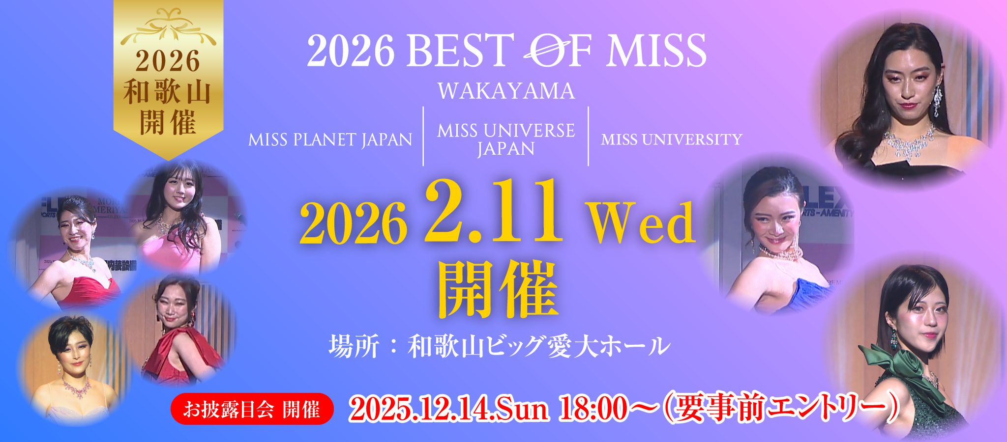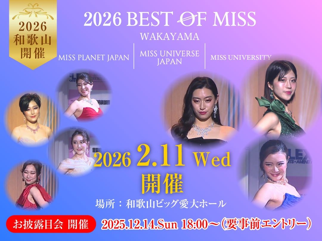 和歌山から世界へをキャッチフレーズに、社会貢献活動や地域活性化、女性の社会進出の確立などを目的としたミスコンテストです。