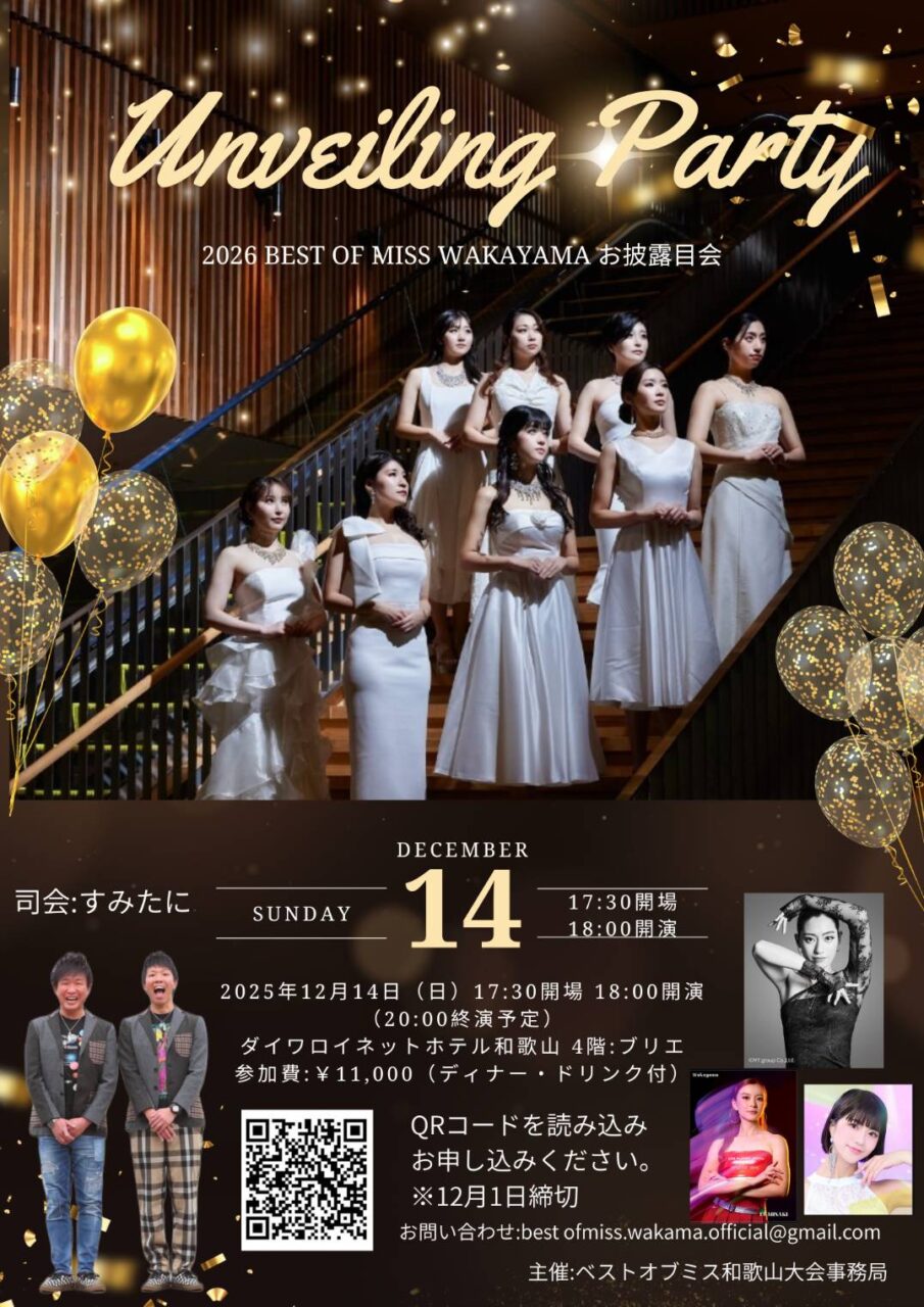 このたび、ベストオブミス和歌山の最終選考に残った候補者のお披露目会を開催いたします。